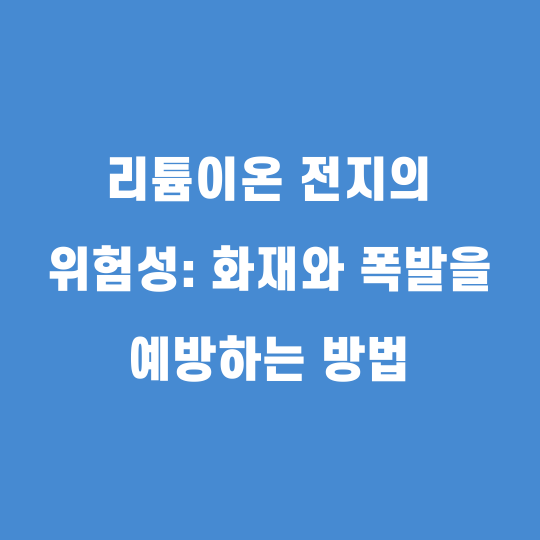 리튬이온 전지의 위험성: 화재와 폭발을 예방하는 방법 리튬이온 전지는 현대 전자기기에서 널리 사용되지만, 그 사용에는 몇 가지 위험이 따릅니다. 이 글에서는 리튬이온 전지의 주요 위험성과 그로 인한 문제점들에 대해 자세히 알아보겠습니다.1. 화재 및 폭발 위험리튬이온 전지는 높은 에너지 밀도를 가지고 있어서 작은 부피에 많은 전력을 저장할 수 있습니다. 그러나 이런 특성은 동시에 화재 및 폭발 위험을 증가시킵니다. 전지 내부에서 화학적 반응이 일어날 때, 높은 온도나 물질 충돌 등 외부 충격에 의해 전지가 폭발할 수 있습니다. 이는 주로 과충전, 물리적 손상, 불량 제조 등으로 인해 발생할 수 있습니다.2. 열 누출과 독성리튬이온 전지가 폭발하면 내부에 포함된 화학 물질들이 주변으로 누출될 수 있습니다...